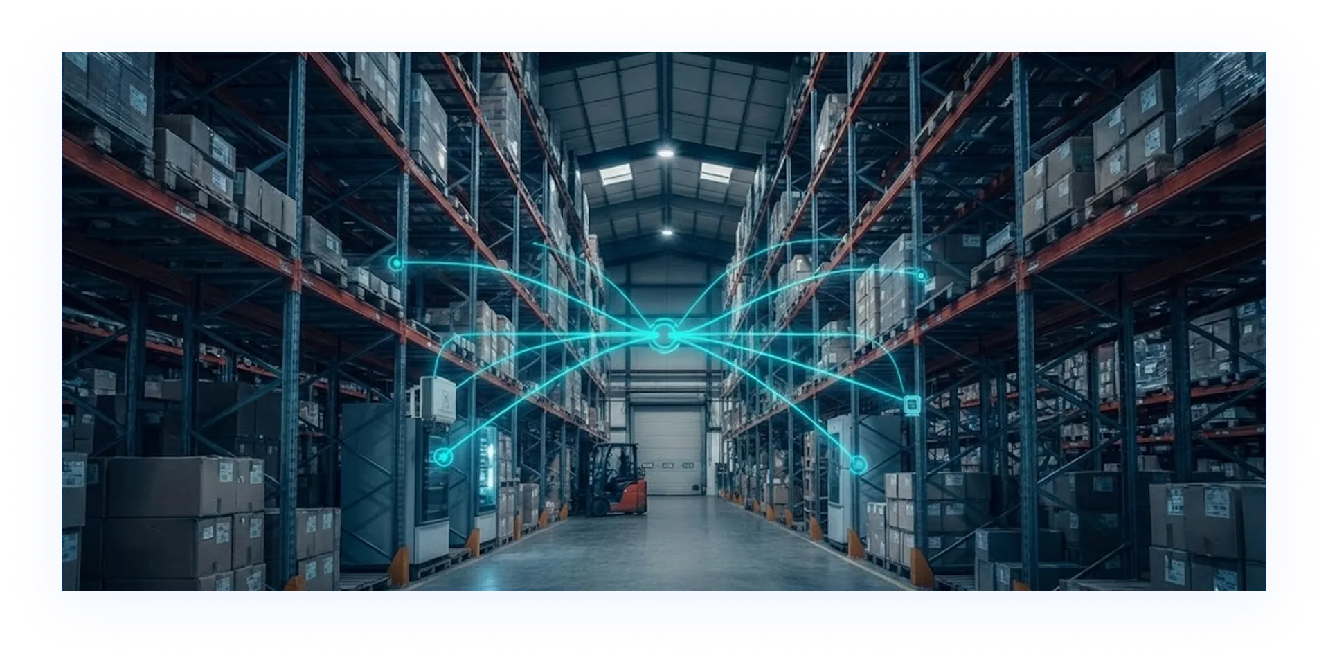 Problem: Massive, metal-rich warehouse environments are difficult to cover with traditional wireless signals. Managers need real-time visibility into environmental conditions for inventory preservation and cost-effective tracking of mobile assets (forklifts, palettes) without the high cost of cellular IoT or the complexity of extensive Wi-Fi deployment.